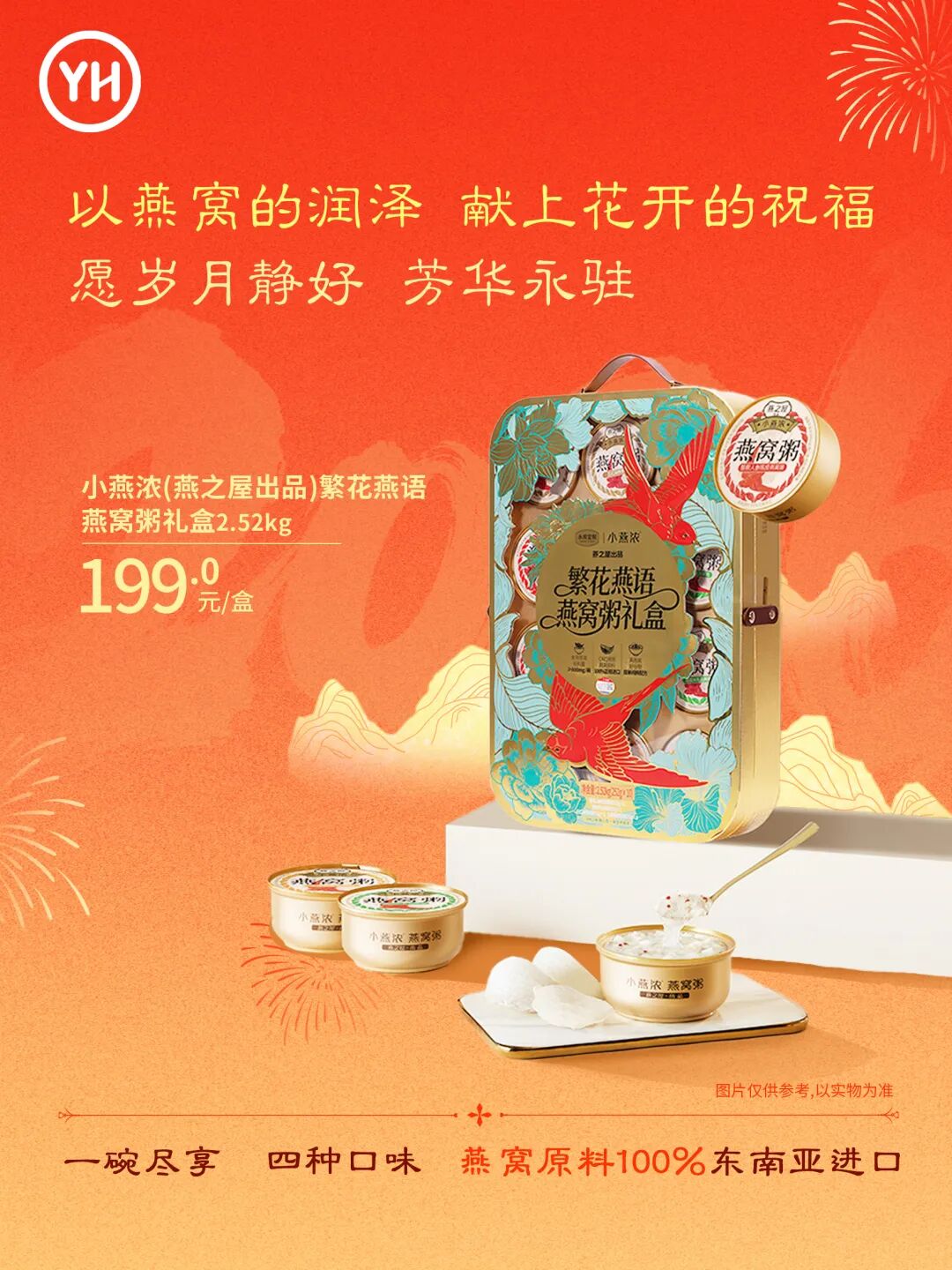 健康滋养场景聚焦送礼与自用的健康需求。永辉定制&油趣工坊有机山茶油礼盒,源自贵州黔东南黎平核心产区,采用100%有机油茶籽,油酸含量≥76%,富含天然维生素E。这款产品从种植源头开始管控,确保全程可追溯。小燕浓繁花燕语燕窝粥礼盒是永辉超市与燕之屋深度合作的成果,融合燕窝与多种珍贵食材,既保持传统滋补价值,又符合现代便捷消费需求。2026年元旦预售期间,这款礼盒在永辉渠道的预订量同比增长超150%。此外,诸如永辉定制×官栈轻食花胶礼盒、永辉定制×江中猴菇缤纷饼干礼盒及养生堂蛋白粉礼盒等多款养生型健康礼盒,也共同构成了满足不同需求的健康礼赠选择。