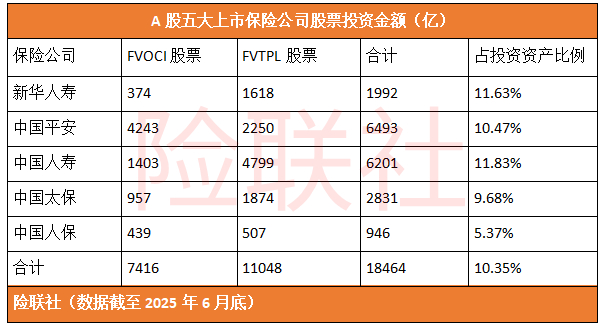 其中,计入其他综合收益的(FVOCI)合计为7416亿,这部分主要是保险公司要长期持有、打算吃股息的高分红股票,而计入当期损益(FVTPL)为11048亿。