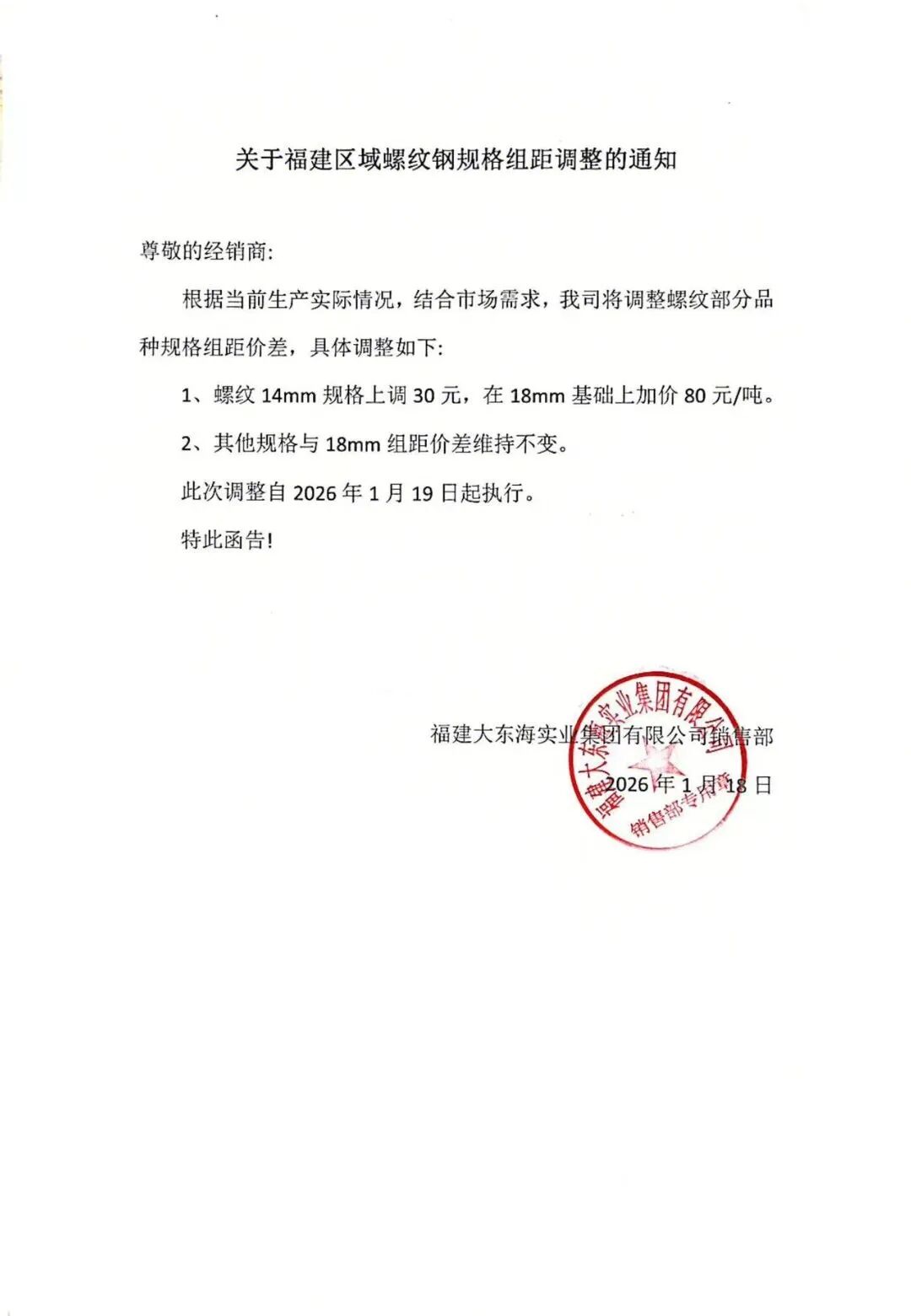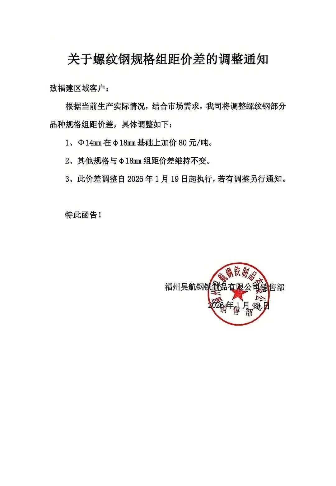 我的钢铁网:近日,福建三钢闽光、福建大东海、福建宏丰实业集团有限公司、福州吴航钢铁制品有限公司发布关于福建区域螺纹钢规格组距调整通知。具体调整如下: