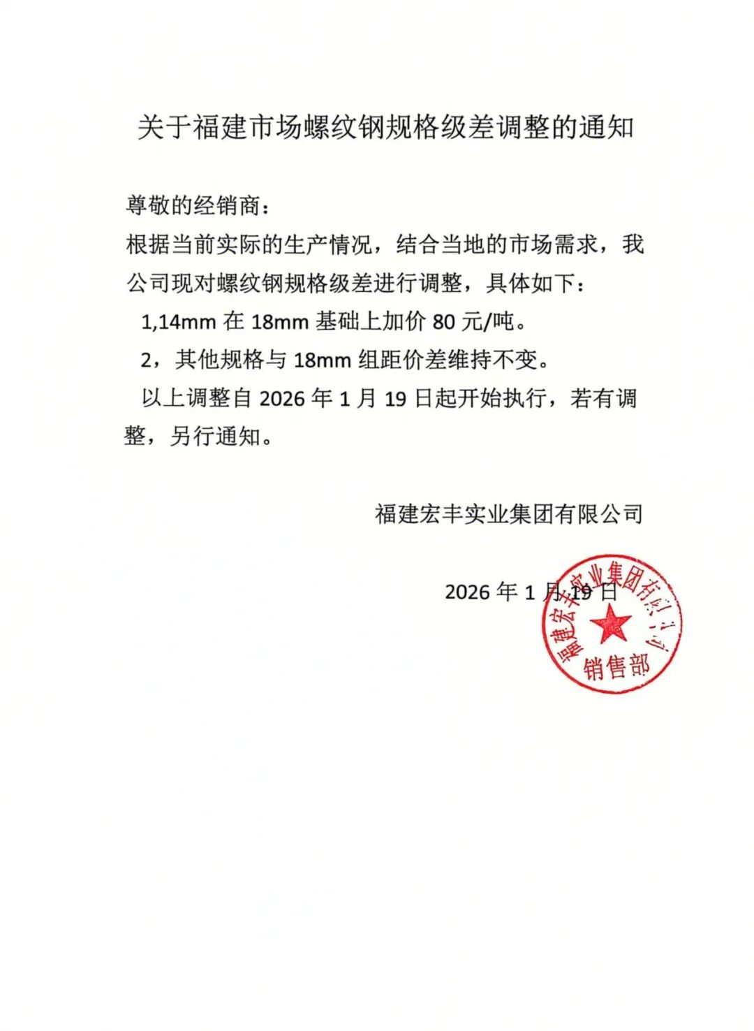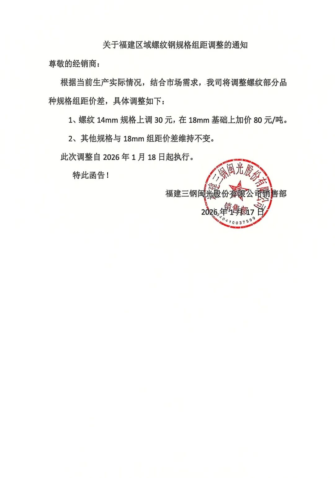 福建4家钢厂发布关于福建区域螺纹钢规格组距调整通知