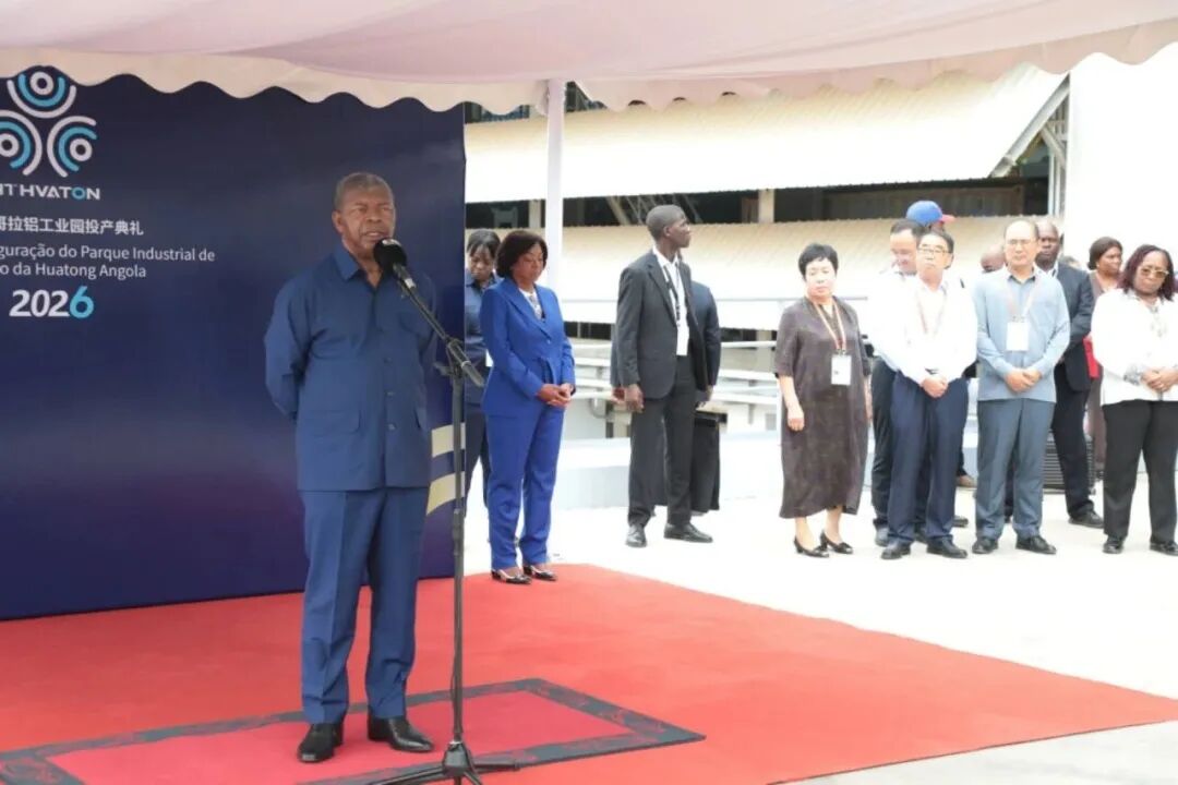 2026年1月15日,安哥拉本戈省奥德工业园区内气氛热烈。安哥拉总统若昂·洛伦索亲临现场,出席华通电解铝产业园项目一期投产仪式。中国驻安哥拉大使张斌,安多位政府部长、本戈省省长等陪同参加,共同见证这一中安经贸合作的重要时刻。