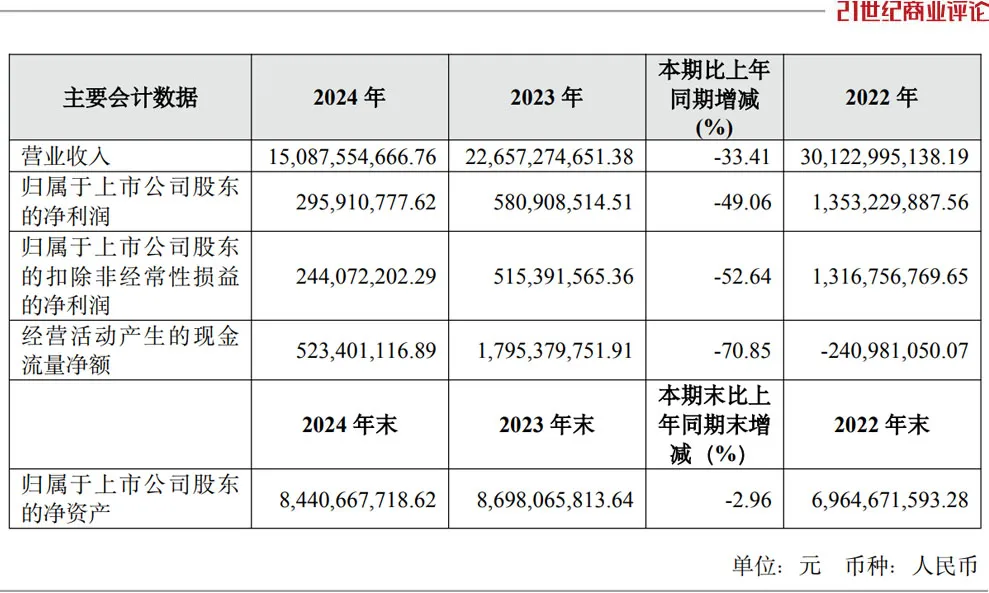 容百科技,总部位于宁波,本是三元电池正极材料龙头,高峰值营收高达300亿元,三年来萎缩过半。