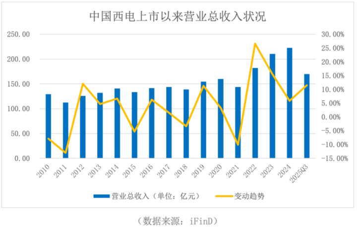 中国西电(601179.SH)是国内唯一拥有输配电一次设备成套生产能力的企业,公司在2025年第三季度实现营业总收入170.04亿元,同比增长11.54%;归母净利润9.39亿元,同比增长19.29%。从业绩上来看,上市15年还能保持如此的成长性实属难得,那么公司究竟做对了什么?