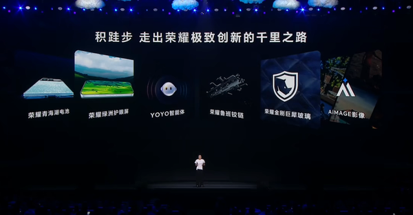 方飞特别强调了荣耀坚持"以消费者为中心"的技术创新理念。她列举了包括青海湖电池技术、绿洲护眼屏、YOYO智能体、鲁班架构以及金刚巨蜥玻璃等多项自研技术,称这些是"荣耀的技术名片,也是荣耀的底气"。