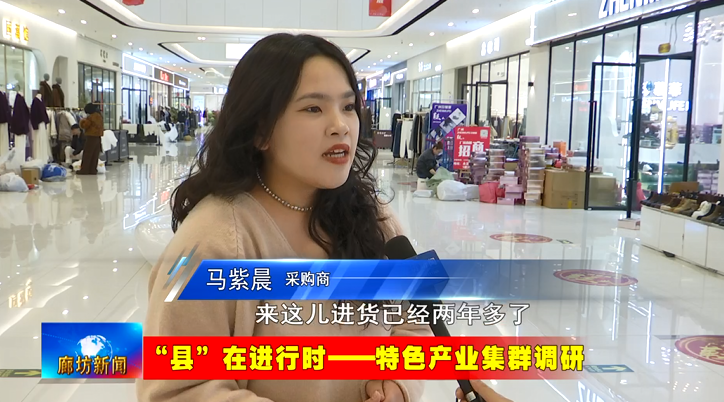 记者佟佳:这里是京津冀(固安)国际商贸城,作为河北省承接北京非首都功能疏解的标志性工程之一,截止目前,这里吸引了来自原北京大红门、老动批等四千多家商户入驻,涵盖男装、女装、鞋类、箱包等多种品类,可以满足不同人群的采批需求。