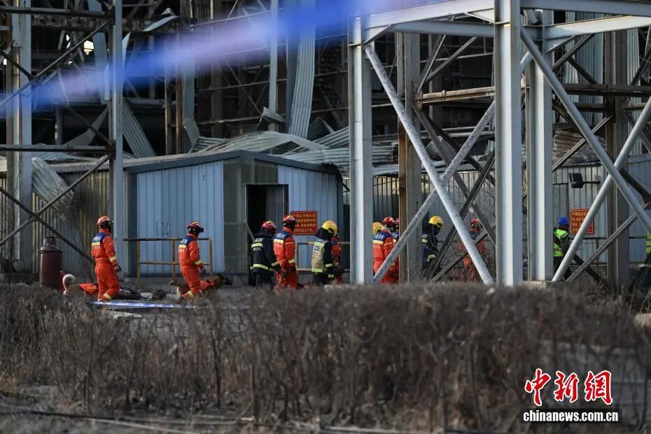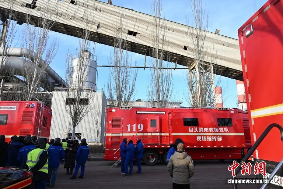 1月19日,包钢板材厂爆炸事故现场,多部门工作有序进行。中新社记者刘文华摄