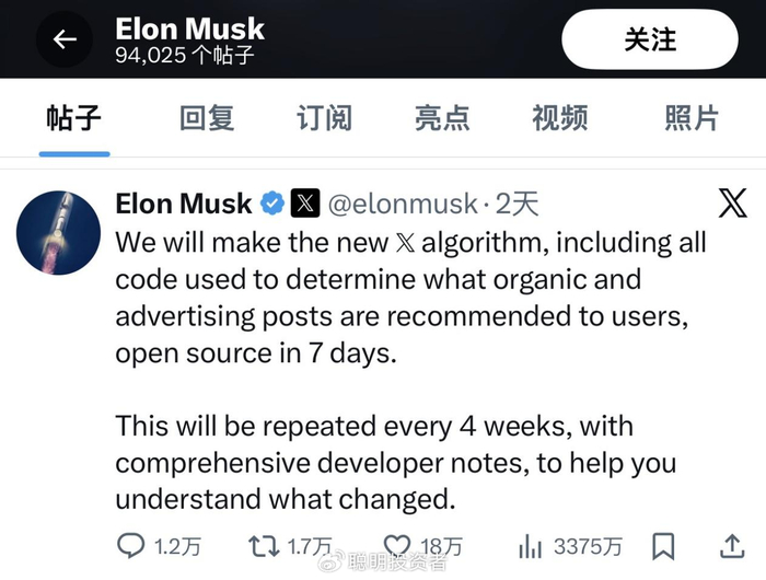 另一方面,马斯克在X上发文称,将在七天内向公众全面开放其最新推荐算法的源代码(覆盖自然搜索结果与广告帖子的推荐逻辑),并计划每四周更新一次代码库。这条消息又把生成式引擎优化(GEO)概念迅速推上风口。