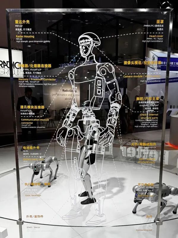 图金发科技在CHINAPLAS2025国际橡塑展现场针对人形机器人展示了一系列材料解决方案(图源:Chinaplas2025)