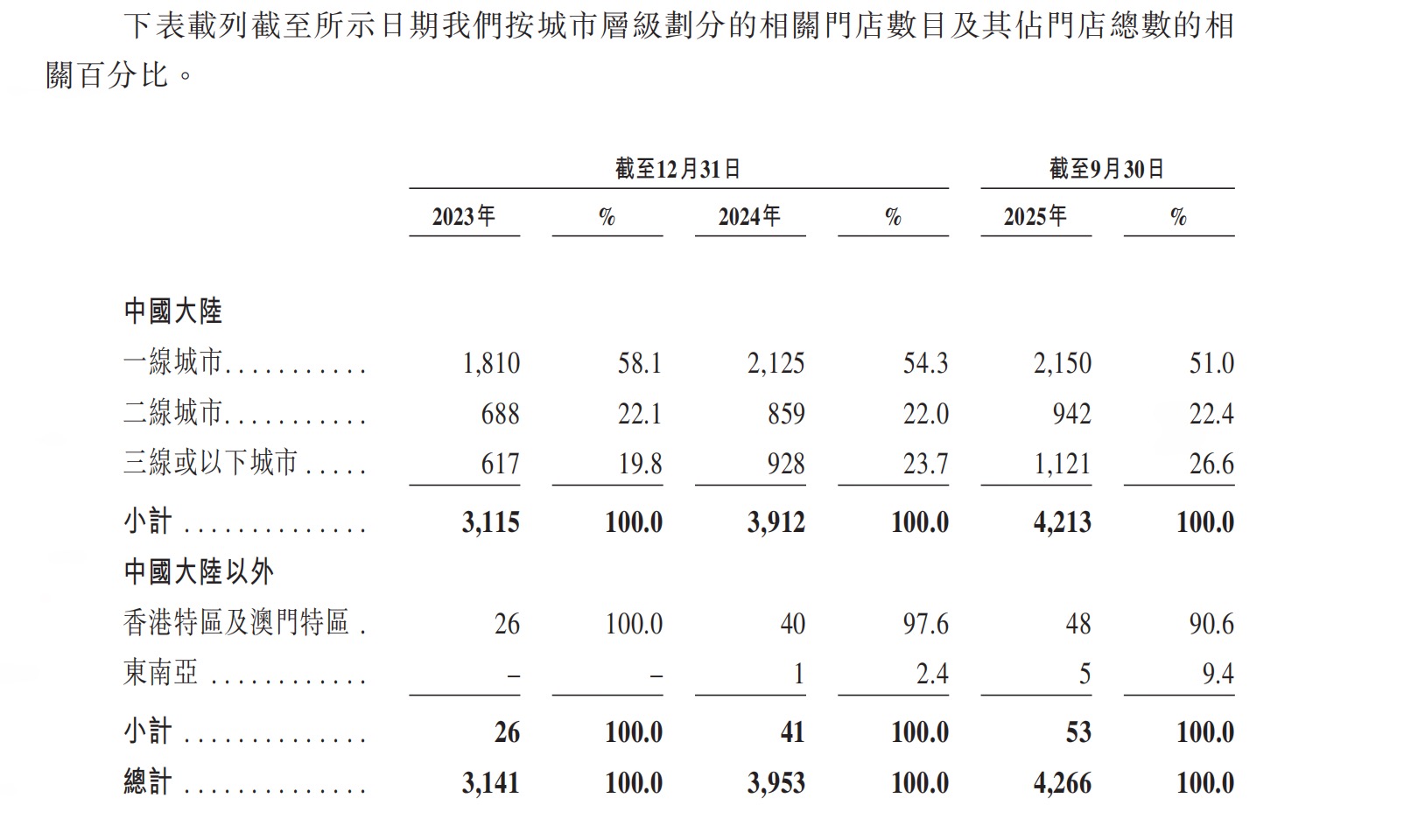 这4266家门店分布在中国32个省、自治区、特别行政区及直辖市,包括200多个覆盖不同层级的城市。