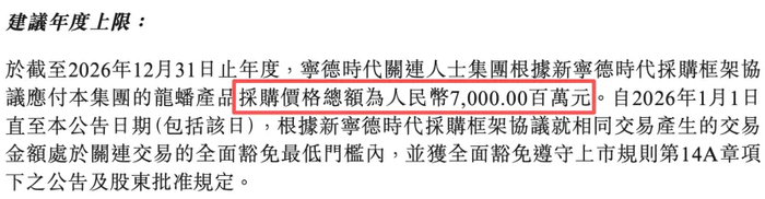 2026年1月15日,龙蟠科技(2465.HK)发布持续关联交易公告,称宁德时代及其关联公司将在2026年度向龙蟠科技采购包括磷酸铁锂正极材料在内的产品,交易金额上限为70亿元。