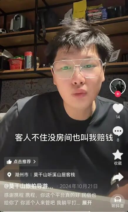 除了“二选一”、“全网最低”等要求之外,携程对商家还有着一套极为苛刻的要求,比如抖音博主@莫干山旅拍导游服务发视频称,自己收到携程官方电话,称多个月前因满房无法满足新客户住宿要求,平台要对商家进行惩罚。该博主称,从去年国庆节开始携程便没有提供客源,自己没赚到钱还要赔钱,感觉很冤。
