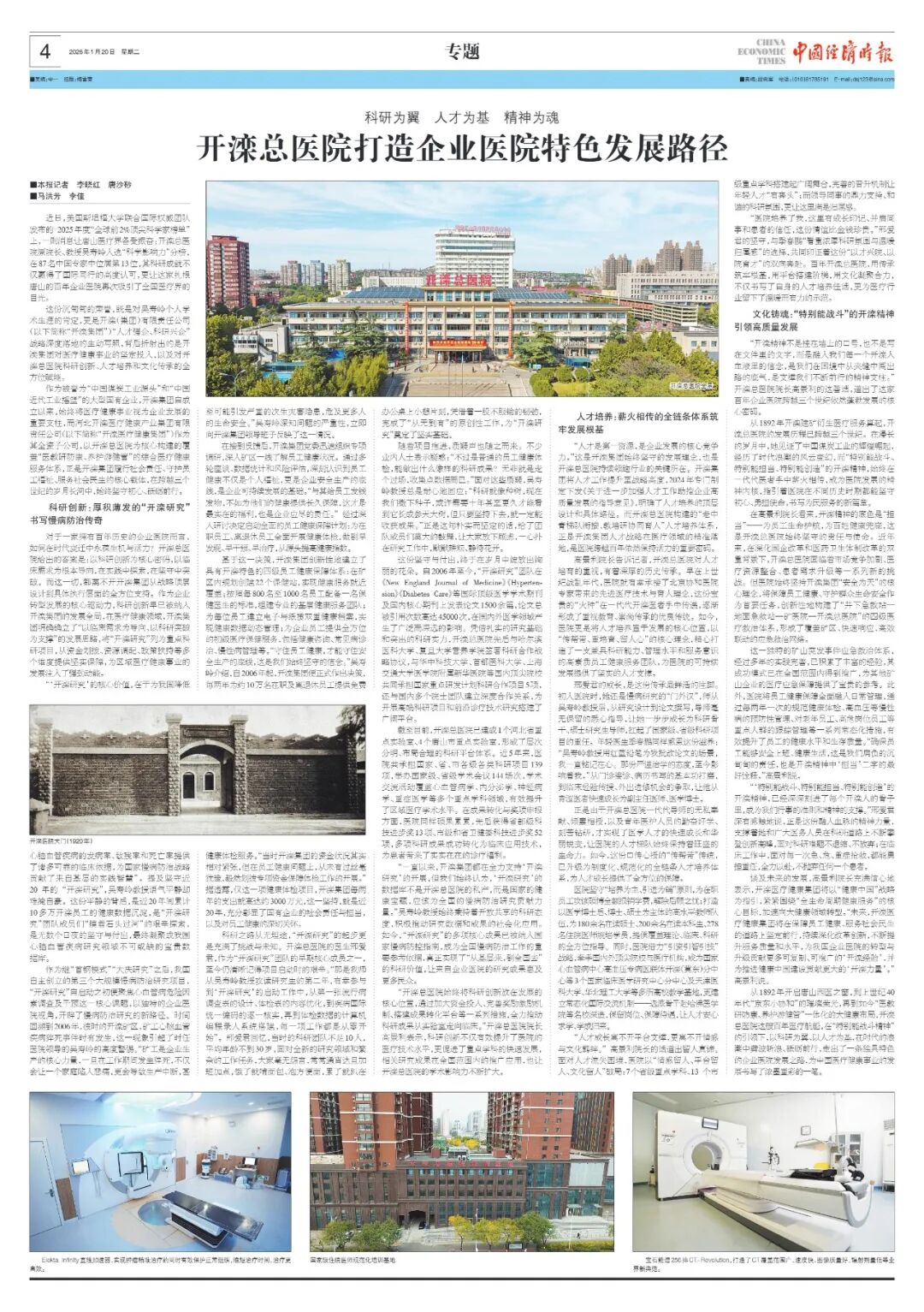 从1892年开启唐山西医之窗,到上世纪40年代“京东小协和”的璀璨荣光,再到如今“医教研防康、养护游健管”一体化的大健康布局,开滦总医院这艘百年医疗航船,在“特别能战斗精神”的引领下,以科研为翼、以人才为基,在时代的浪潮中劈波斩浪、砥砺前行,走出了一条独具特色的企业医院发展之路,为中国医疗健康事业的发展书写了浓墨重彩的一笔。