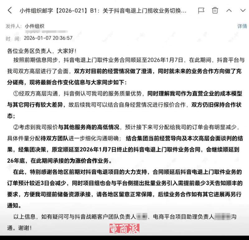 一个最直观的例子是,前不久顺丰因合同到期,主动退出了抖音电商退货业务,业内普遍猜测是“价格没谈拢”,而后相关业务逐步交由京东、三通一达等承接。