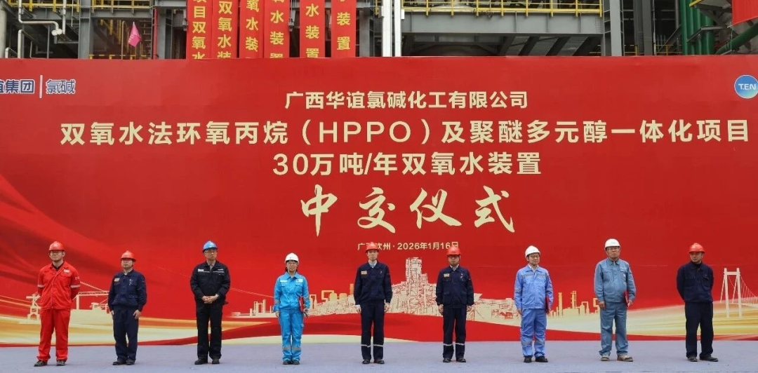 据上海华谊及山东昊华工程管理有限公司消息,2026年1月16日,广西氯碱30万吨/年双氧水装置举行中交仪式,标志着正式由工程建设转入生产准备阶段,为HPPO项目全线投产奠定了关键基础。