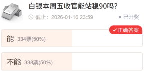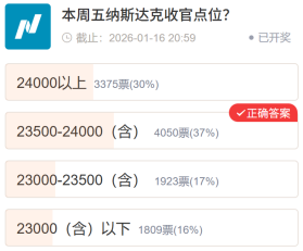 本周,围绕纳指、黄金、原油、白银的收官投票圆满落幕。不仅有行情波动和市场情绪交织拉扯,更有13张百元礼品卡重磅送出,未来更有金豆等丰厚福利持续加码!有人精准研判喜提奖品,有人乐观踩空抱憾离场,白银生死局更是悬念拉满。每一个精彩瞬间,都是基于真实数据的财经用户调查生动缩影!