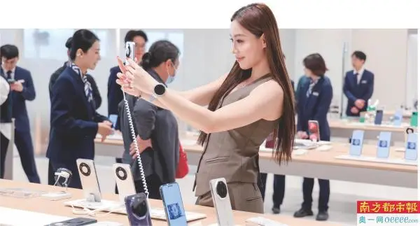 华为智能生活馆的手机产品深受消费者喜爱。南都记者赵炎雄摄