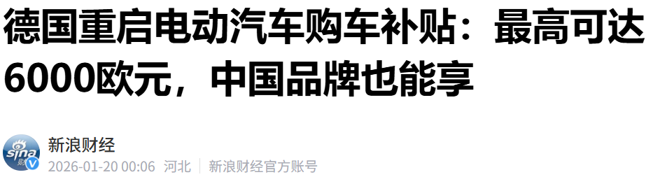 电动知家消息,德国政府19日宣布重启电动汽车补贴计划,明确向中国品牌开放,成为继欧盟价格承诺协议、加拿大关税配额之后,中国电动车全球化的又一重大突破。