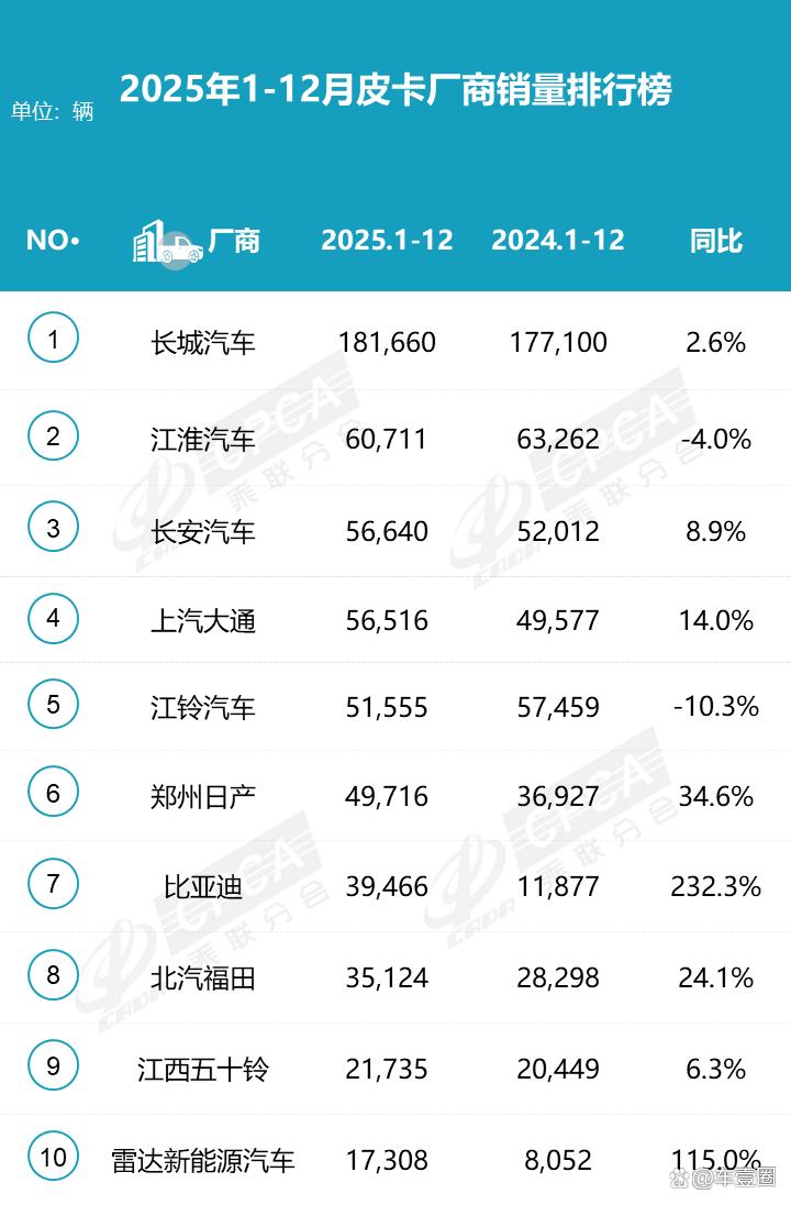 2025皮卡销量丨长城第一,比亚迪成大黑马,出口成主旋律