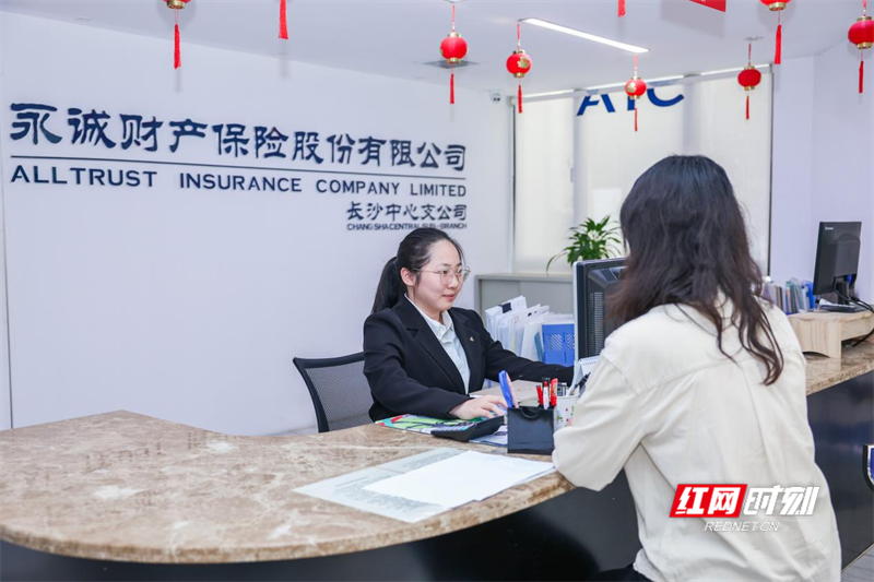 永诚保险湖南分公司工作人员正在为客户办理业务。