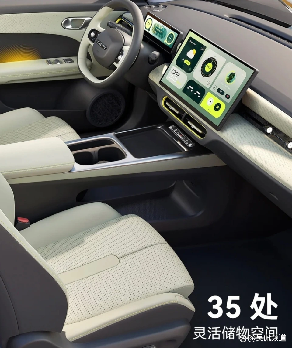 新能源化之后,尺寸比当年更大,4195*1811*1569mm,轴距2700mm,跟星愿接近,电机有58kW和90kW两种。设计是QQ3的最大卖点,有大量圆形类似胶囊的元素,还有很多撞色设计,就车机界面也是大色块+精致路线,原创度还是蛮高的。如今90后都35+了,QQ3会不会是他们拿来代步用的增购之选?