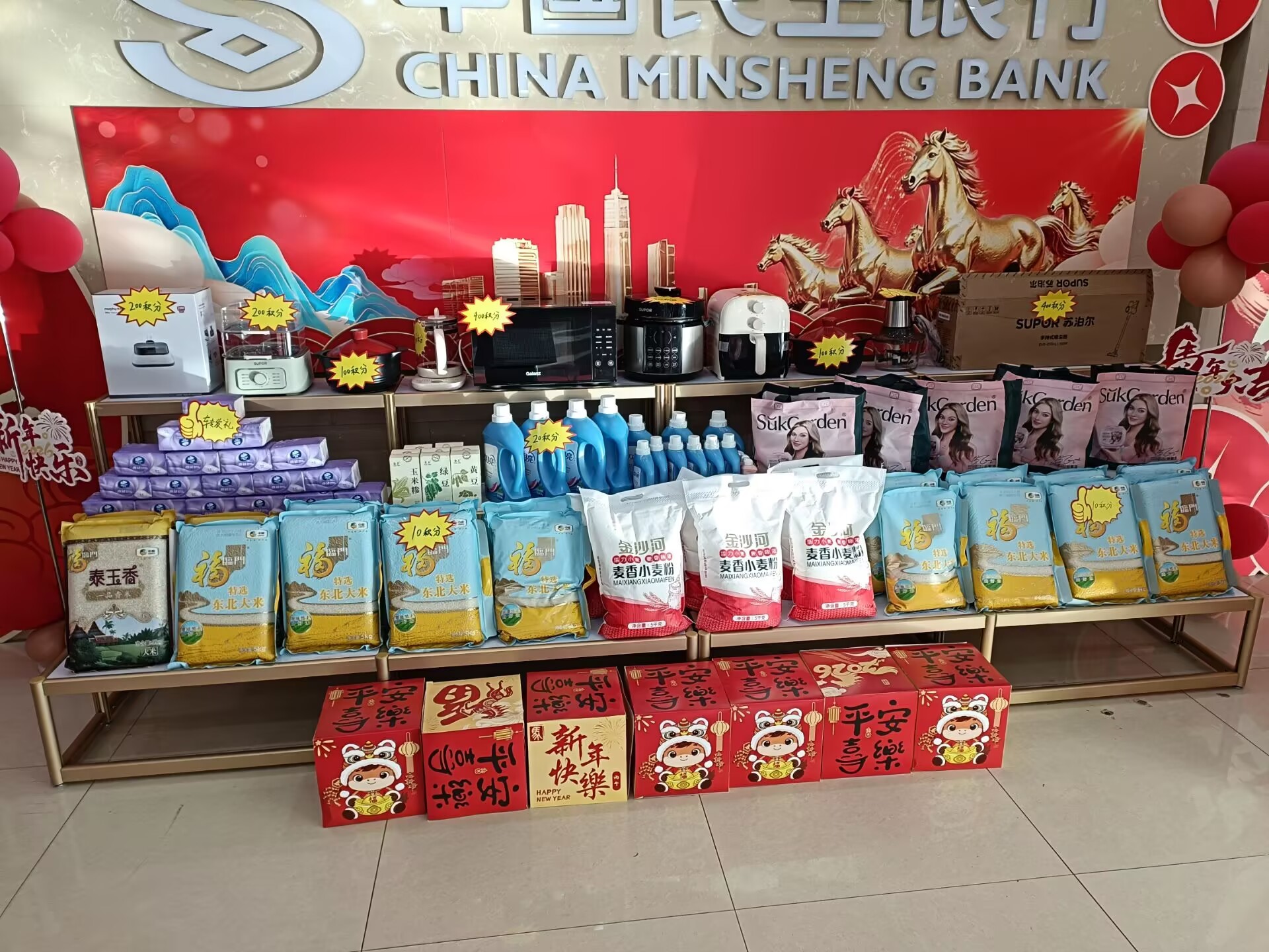 走进民生银行北京某网点,映入眼帘的是摆放在地上琳琅满目的商品,从纸巾到米面油,均被明码标注了积分。