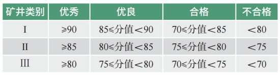 根据煤矿主采煤层赋存条件、开采技术条件等,将井工煤矿智能化建设条件分为I、Ⅱ、Ⅲ类,按照智能化建设条件分类,制定不同的评分指标。陕西煤业在国家能源局评分指标的基础上,细化常态运行指标,增加了完好率、接入率、联动率等体现常态运行的考核指标。并采取以各单位每月自查、矿业公司每季度检查和陕西煤业不定期抽查的方式,对34处(其中7处为国家首批智能化示范煤矿)智能矿井进行常态运行检查与考核,根据考核得分依次分为优秀、优良、合格、不合格4个等级,具体对应关系见表1。