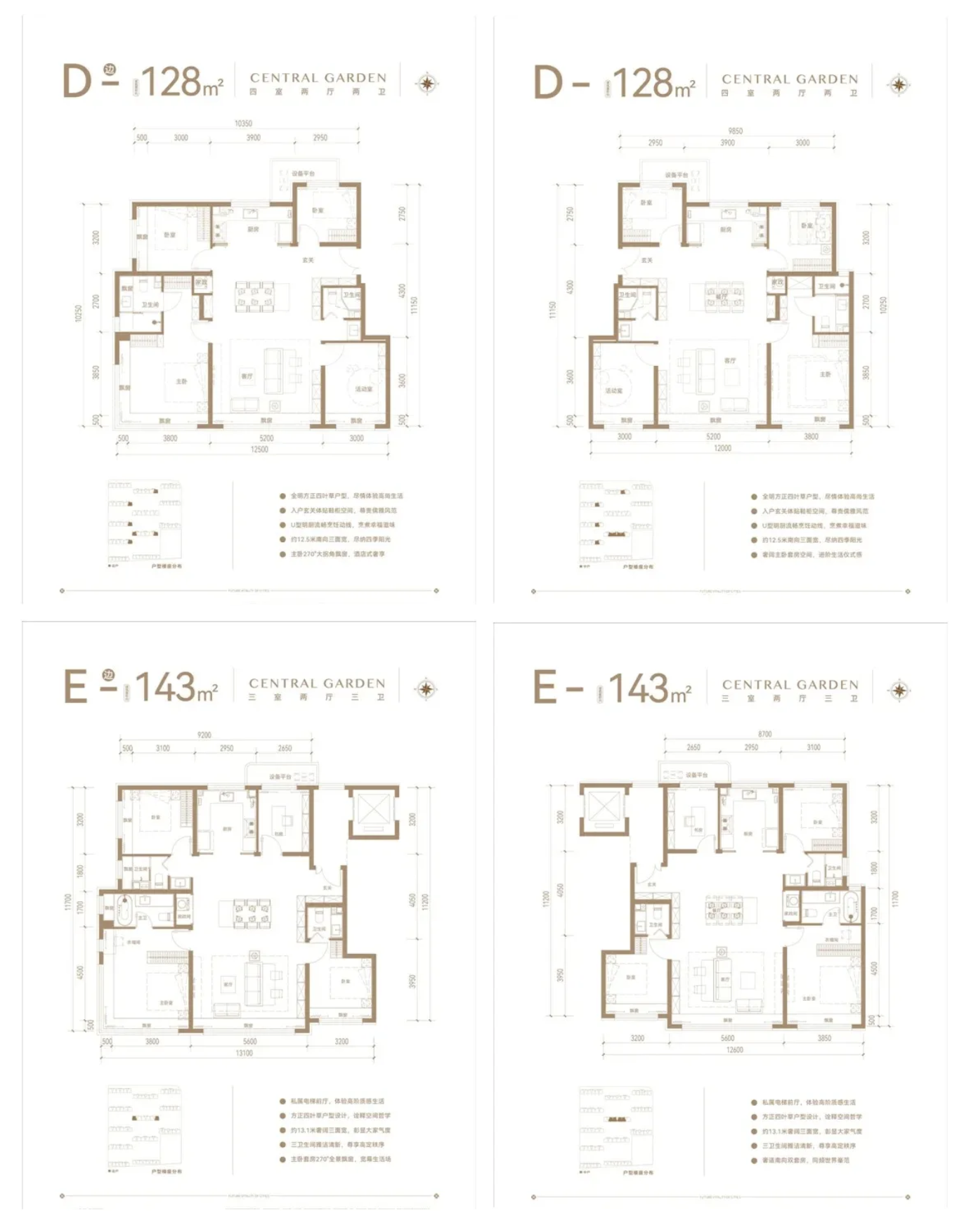 项目规划12栋8-15F小高层,主力面积段为84-143㎡三居、四居户型。