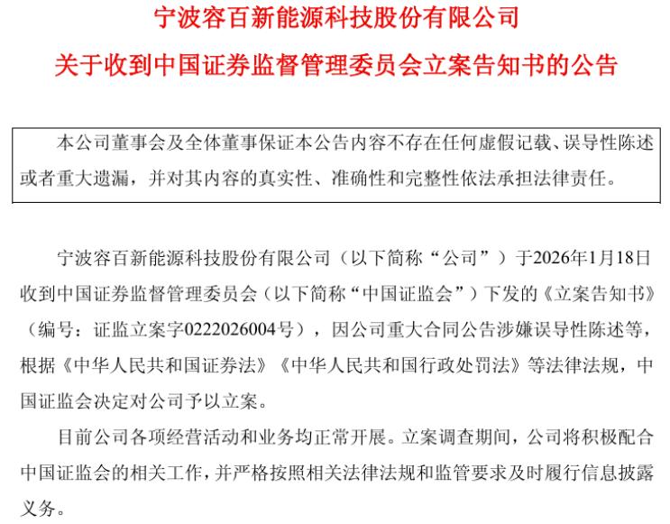 因公司重大合同公告涉嫌误导性陈述,证监会对容百科技展开立案调查