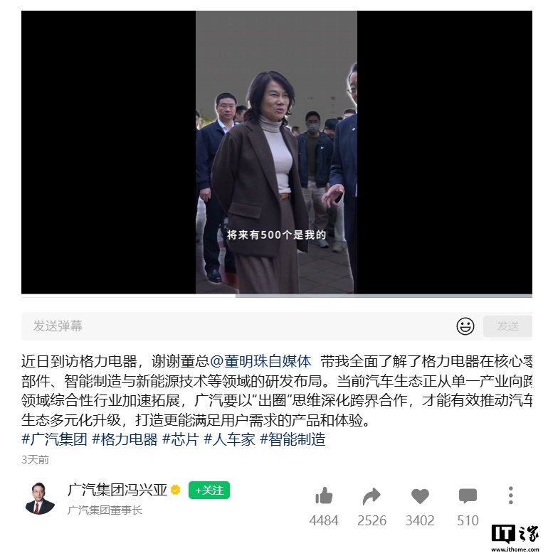 广汽集团董事长冯兴亚率队访问格力电器,官方称网传表述并非事实