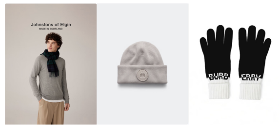 添置外套的同时,搭配上帽子、围巾和手套“组团”御寒,保暖效果才会加倍。Johnstons of Elgin羊绒围巾,采用100%山羊绒+苏格兰工坊30多道工序,14种色彩任选还能定制绣字。更适合男生的加拿大鹅Arctic托克帽,纯美利奴羊毛+特殊染色技术,每顶都是独一无二的。BURBERRY羊绒混纺绒线手套,黑白撞色拼接融合品牌字符设计,保暖又时尚。