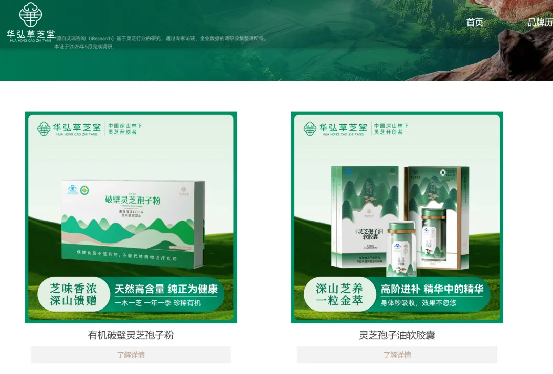 ▲华弘草芝堂官网上展示的破壁灵芝孢子粉