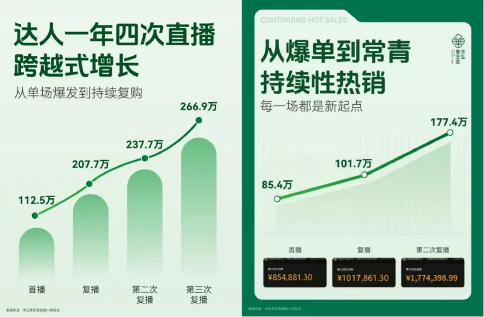 此外,华弘草芝堂更注重长期性和深度合作,通过多年多场直播合作,达人的单场GMV持续增长,实现了双方互利共赢。