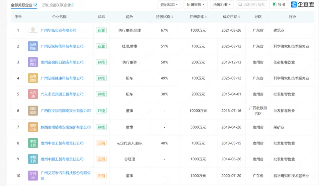 信息显示,曾建宏早期主要涉足批发零售、采矿等领域,曾在贵州中贵工贸、中顺工贸,以及广西铁投冠信瑞泰、黔西南州晴隆安宝煤矿等企业任职。