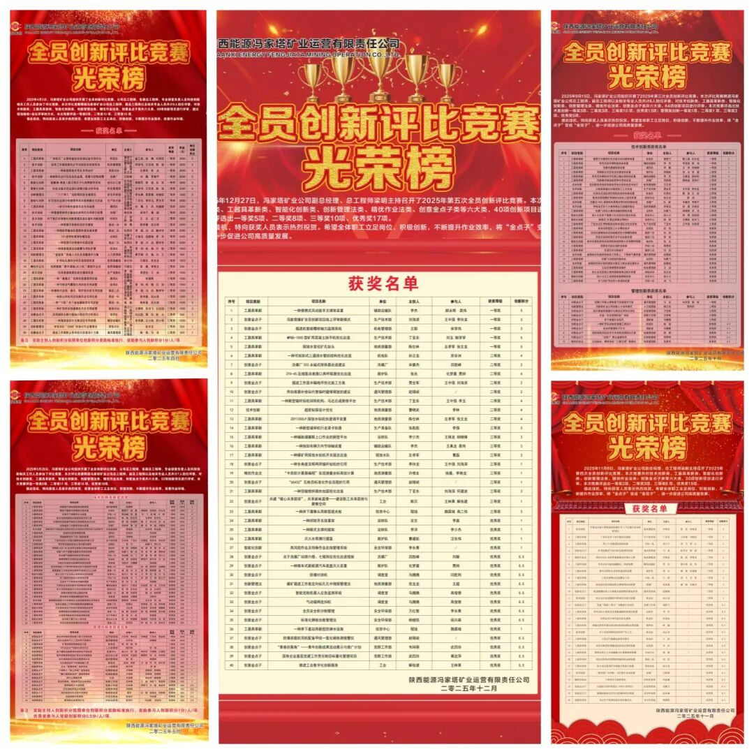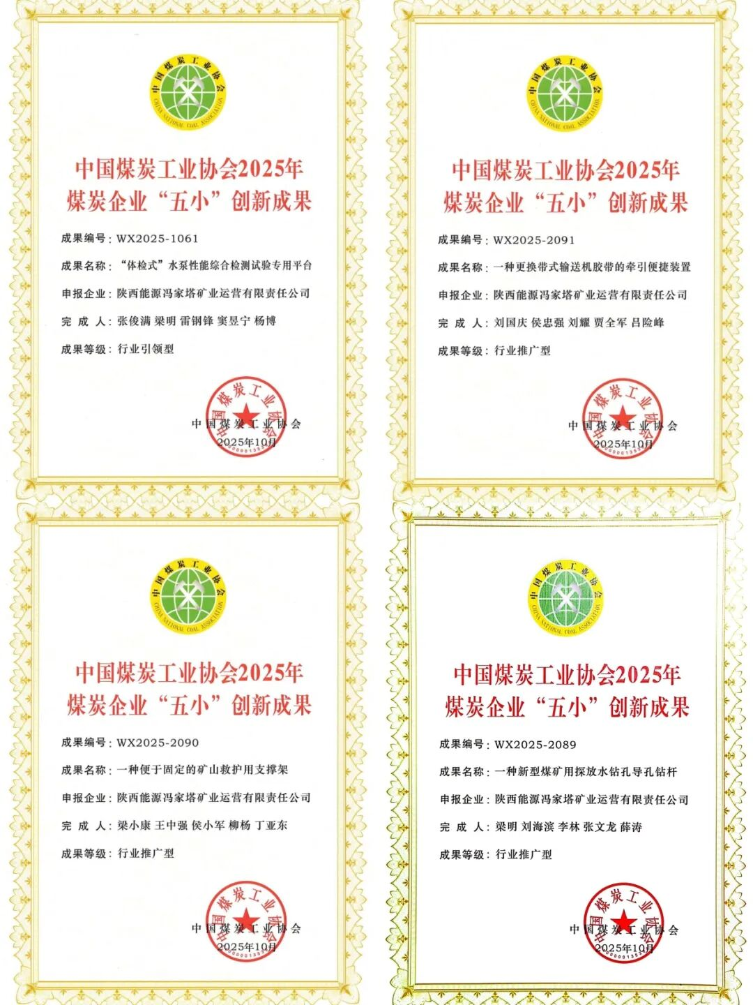 冯家塔运营全年发表省级及以上学术论文35篇、申报实用新型专利14项、授权专利2项。2项科技成果被鉴定为“国际先进”水平,4项创新成果获评中国煤炭工业协会煤炭企业“行业引领型”“行业推广型”五小创新成果荣誉,并精彩亮相国际煤炭采矿技术展。11项创新成果斩获陕投集团首届职工“五小”创新大赛奖项。此外,已申报陕西省煤炭科技创新先进单位、先进个人及第二届陕西省煤炭科学技术奖,创新驱动发展氛围日益浓厚。
