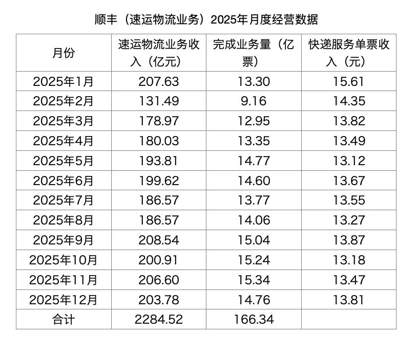 从2025年1—12月的全年数据来看,顺丰速运物流业务收入达到2284.52亿元,全年完成业务量166.34亿票。另外,顺丰2025年供应链及国际业务实现营收727.46亿元。这也意味着,仅这两项业务2025年营收就已经达到3011.98亿元,这也是顺丰首次实现营收超过3000亿元。