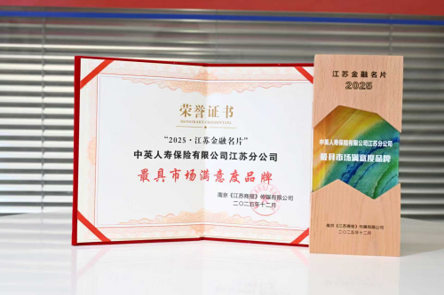 近日,在《江苏商报》联合多家媒体发起的“2025·江苏金融名片”评选中,中英人寿江苏分公司凭借卓越的服务品质、深厚的客户积淀与稳健的市场表现,荣膺“最具市场满意度品牌”奖项,这是行业与社会对中英人寿深耕江苏寿险市场、践行客户至上理念的高度认可。