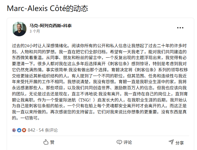 相反,公司向他提供了两个替代方案:一是担任“生产主管”一职,隶属未来的“系列主管”领导;二是领导一个构想模糊、负责次要系列的“创意工作室”。对于一个自视为《刺客信条》系列守护者、掌舵多年的老将来说,这无疑是一种“体面的流放”。他失去了与重要合作伙伴直接对话的身份,也失去了在核心项目中的话语权。