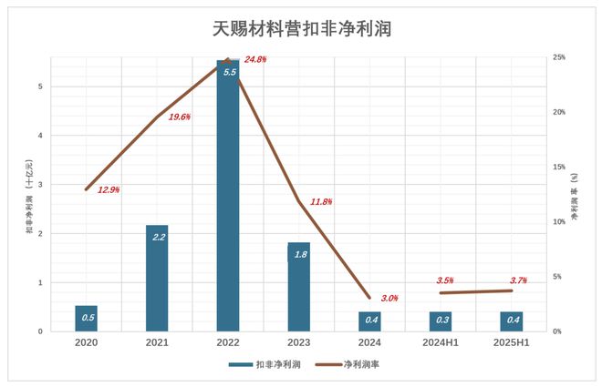 2025年H1,天赐扣非净利润提高到4亿,利润率3.7%;