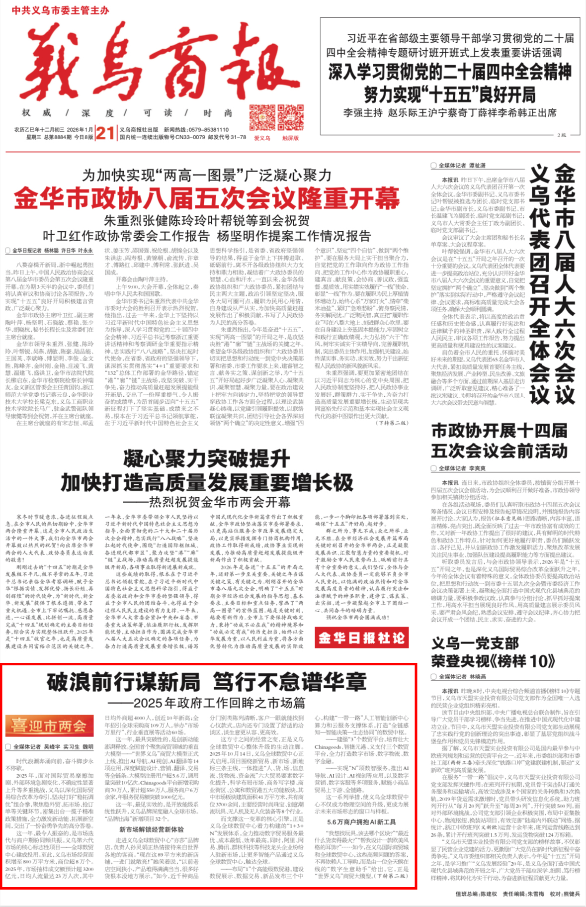 义乌商报头版丨破浪前行谋新局 笃行不怠谱华章——2025年政府工作回眸之市场篇