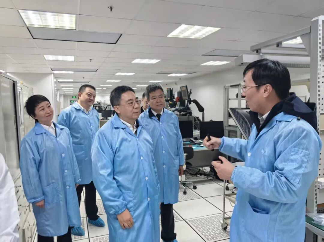 西安海关关长樊堃(右三)在西安紫光国芯半导体股份有限公司调研