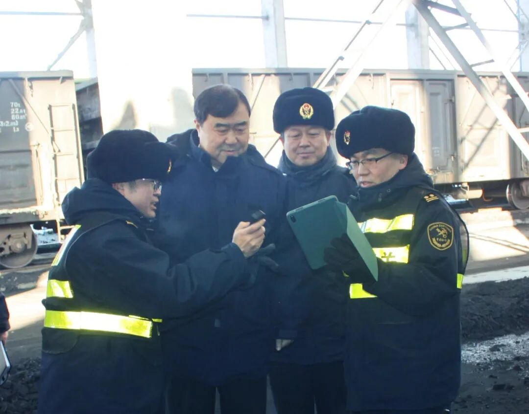 满洲里海关关长曲罡(左二)在满洲里铁路口岸调研