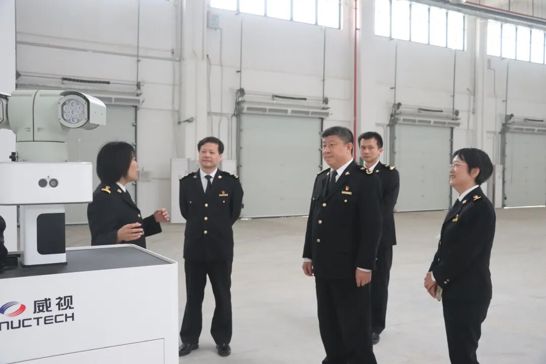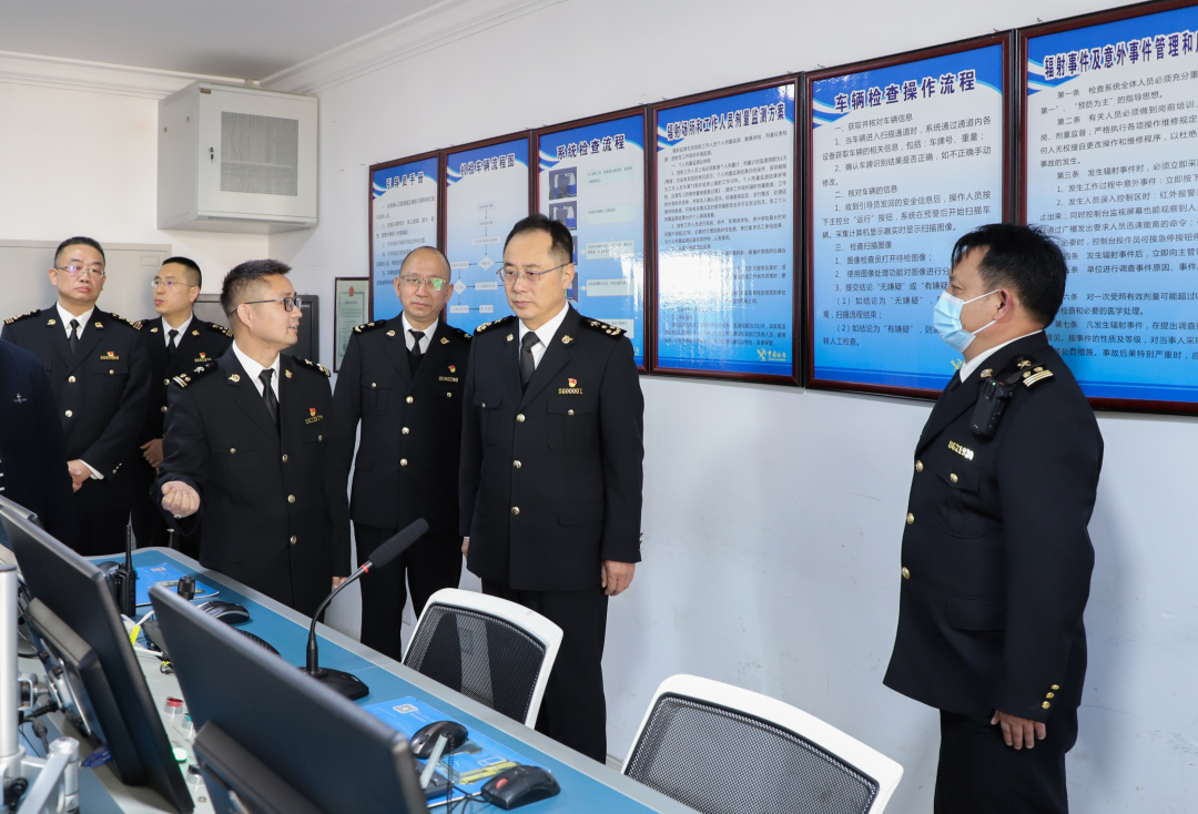 湛江海关关长黄国华(右一)到湛江机场海关实地查看进出境通道、卫生检疫负压区和行李物品查验区
