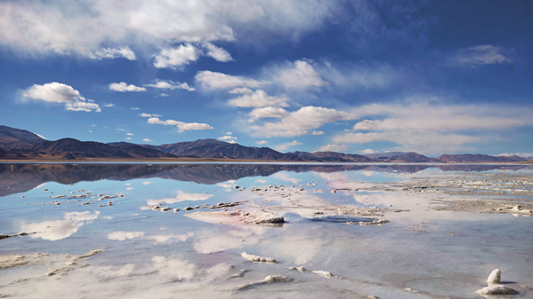 革吉县“盐羊古道”上的盐湖。朱峰/摄