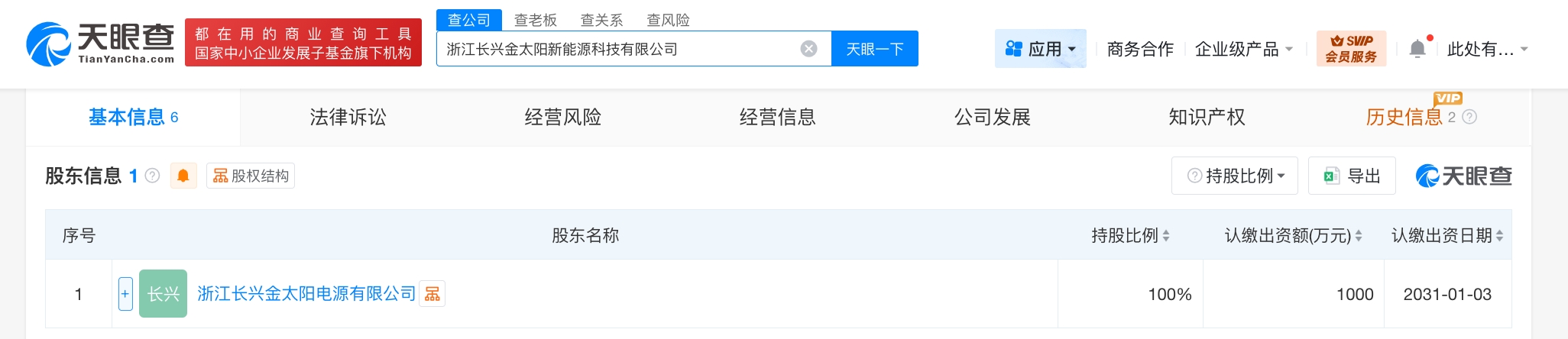 近日,浙江长兴金太阳新能源科技有限公司成立,法定代表人为开明敏,注册资本1000万人民币,经营范围含工程和技术研究和试验发展、新材料技术研发、资源再生利用技术研发、电池制造、电池销售、蓄电池租赁、电动自行车销售、储能技术服务等。股东信息显示,该公司由超威电源集团旗下浙江长兴金太阳电源有限公司全资持股。