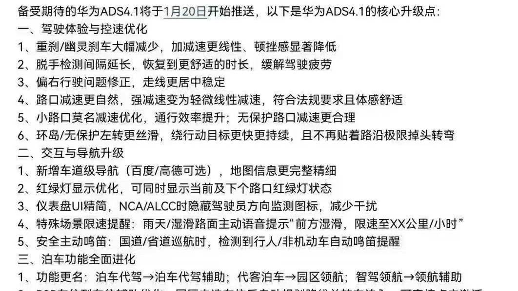 华为乾崑ADS4.1已经官宣在1月20日开始推送,理想的OTA8.2将在1月内完成全量推送,基于NWM2.0世界模型的蔚来智驾辅助,也确定会在春节前完成推送。
