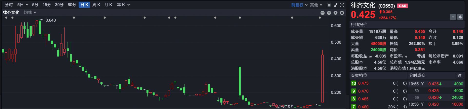 由于律齐文化长期处于亏损状态,其股价一直不太活跃,总市值较低。而今天受消息刺激,股价暴涨超250%,引发市场关注。