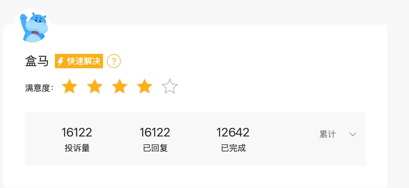 不仅如此,在黑猫投诉上,也有不少关于盒马的投诉,其中不乏食品安全问题。截止发稿,黑猫投诉上关于盒马的投诉共有16122条。