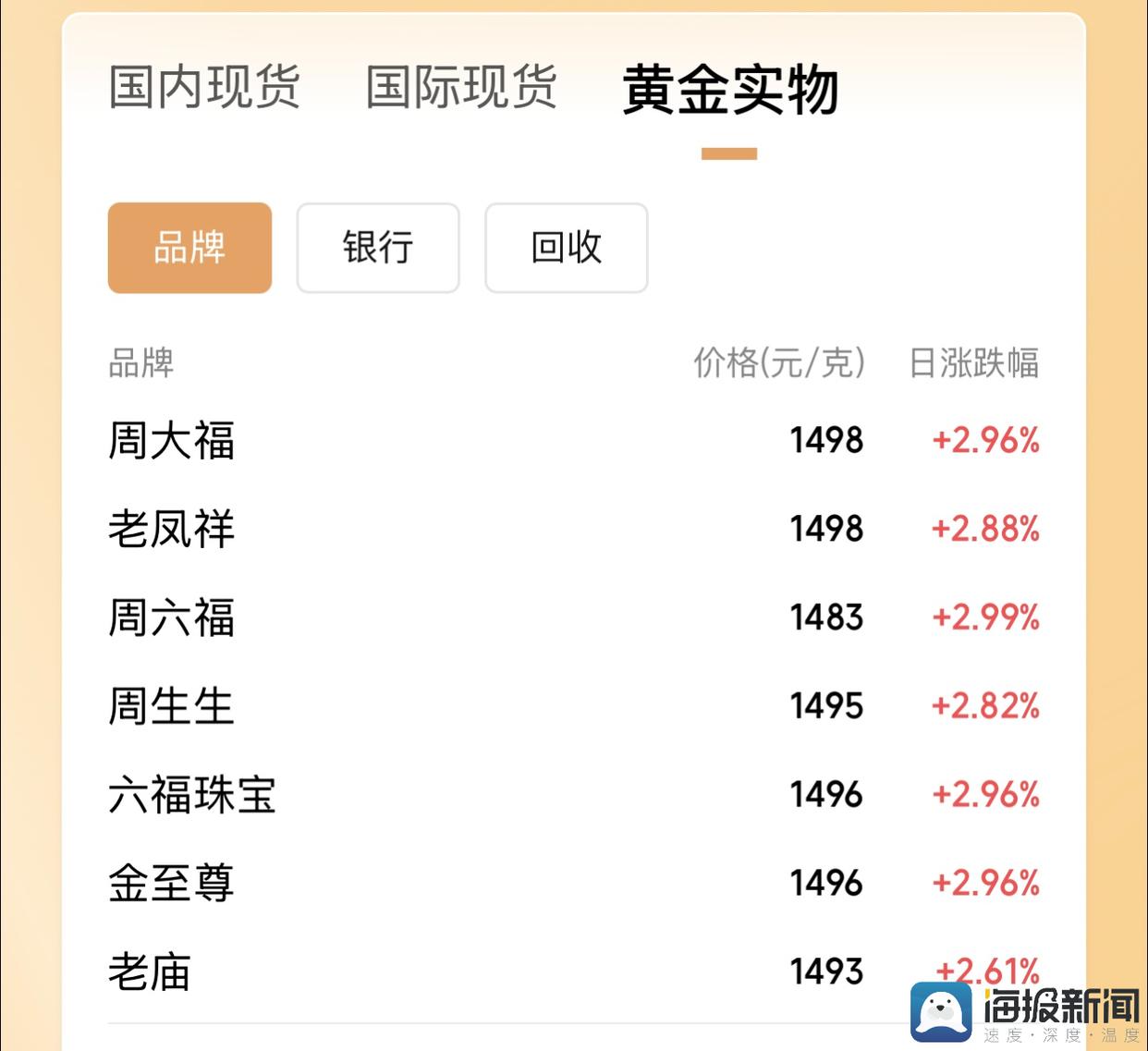 海量财经丨国内金饰价格突破1500元/克,有品牌推出1.8克黄金手链