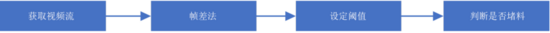 针对输送带堵料检测场景,设计输送带堵料检测识别流程如图6所示。首先使用帧差法,将连续视频中相邻两帧灰度化图像中的相同位置的像素值相减并取绝对值,得到帧差图像;设定阈值并对帧差图像进行二值化处理,得到图像中运动物体的掩模图像;最后通过状态判断出是否堵料,堵料的严重程度。