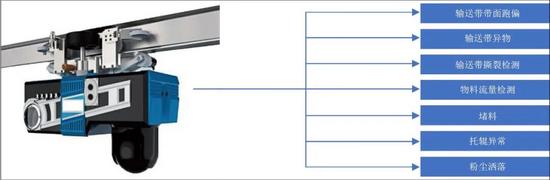 由于不同场景矿业环境的复杂性,在煤炭、矿石、矿渣等生产过程中,带式输送机作为一种连续输送设备,经常发生带面跑偏、异物、堵塞、撕裂等异常。受井下恶劣环境影响,发生异常时,现有人工巡检存在发现不及时、范围有限等问题,易发生输送带带面损坏,甚至引发严重的煤矿事故。因此,采用智能化装备代替人工,实现对带式输送机场景的全方位监测。